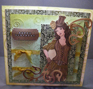 Next run the card through your Grand Calibre and emboss with the trelis mask and trim to size.