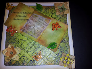 embossing powder. Add gold stickles and put aside to to dry. Stamp and emboss